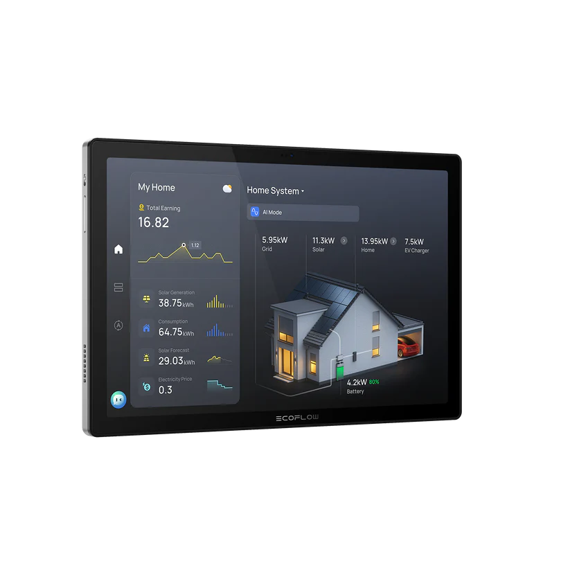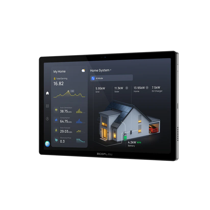 Der EcoFlow PowerInsight 2 ist das zentrale Bedien- und Anzeigegerät für ein intelligentes Energiemanagement im Haushalt. Über den großzügigen 11-Zoll-IPS-Touchscreen mit einer Auflösung von 1920 × 1200 Pixeln werden sämtliche Energieflüsse übersichtlich und in Echtzeit dargestellt – von der Solarstromerzeugung über die Einspeisung bis hin zum aktuellen Verbrauch.